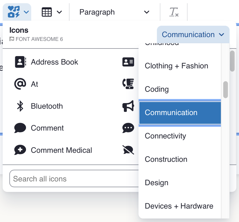 CKEditor 5 Icons is the sleekest way to add Font Awesome icons directly to content on your Drupal website. Use Drupal’s inbuilt CKEditor to easily insert, move, or delete icons alongside text and other elements in a fully WYSIWYG experience. Works with Font Awesome 6 Free and Pro.
